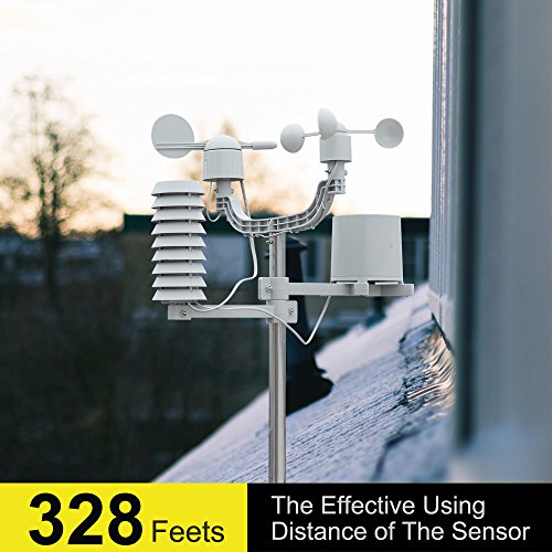 - Weather station comes with wireless hygrometer remote sensor, wind gauge and rain gauge: the measuring range is 328 feet (range up to 100 meters) without any obstacles. wind speed in mph / kmh (0 ~ 256kmh), 16 wind directions, precipitation indication (0 ~ 999.99mm)