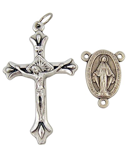 -. Binding : Jewelry -. Brand : Religious Gifts -. Department : womens -. Feature : Miraculous Medals - Silver Tone - 7/8 Inch (H) / Crucifix - Silver Tone - 1 3/8 Inch (H) / Lot includes 5 of each style medal / Great for rosary making and gifts -. Label : Religious Gifts -. Manufacturer : Religious Gifts -. MPN : 7RMYH9Y -. PartNumber : 7RMYH9Y -. ProductGroup : Jewelry -. ProductTypeName : FASHIONNECKLACEBRACELETANKLET -. Publisher : Religious Gifts -. Studio : Religious Gifts -. Title : Silver Tone Miraculous Medal Rosary Centerpiece with Crucifix Pendants, Lot of 10
