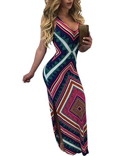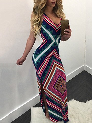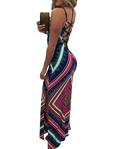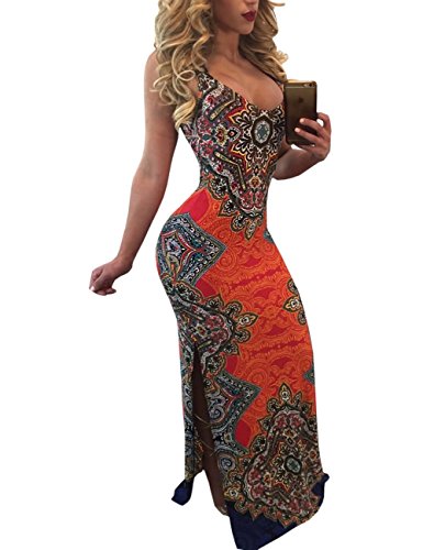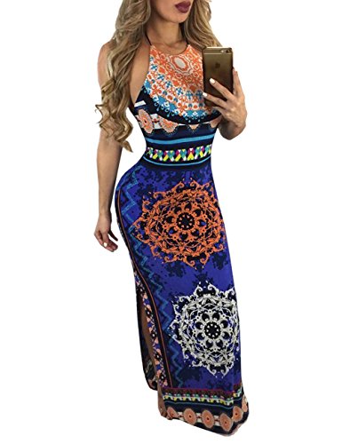 Features:High split side,halter deep v-neck,backless, full Floral Printed,sexy but also elegant.