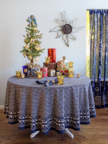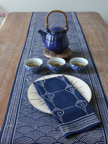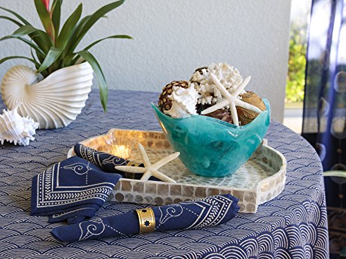 -. Feature : Graphic conch shells strikingly patterned across a deep navy / indigo blue ground. / Designed to coordinate with the Pacific Blue Tablecloths and Runner. / One-of-a-kind and reusable...a planet happy, utterly stylish way to be and stay green. / Sold as a set of 6 Napkins. Size: 20 inches wide and 20 inches long. Printed on preshrunk, superior grade, soft cotton and finished with neat double stitched hems. / Hand printed using intricately carved wooden blocks. Machine wash, gentle cycle, cold water, mild detergent.