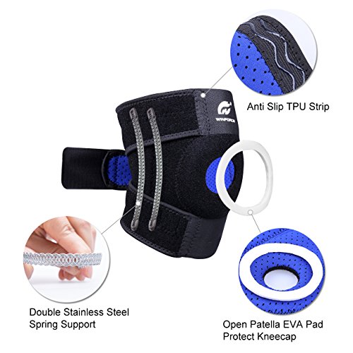 ★ ANTI-SLIP STRIP & REINFORCED STABILIZER the TPU wave strip from top to bottom of our knee brace ensures that it stays firmly in place while you move plus quadruple(4pcs) side patella knee stabilizers. These advanced and professional benefits are superior to pull on knee compression sleeve