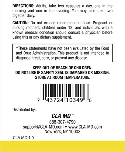 CLA - Pure 100% CLA derived from safflower oil standardized to 85%, which is the highest potency available and stronger than anything used in clinical studies for optimal weight loss benefits. CLA MD™ has no added fillers, binders, preservatives or additives. It comes in a liquid softgel capsule for the quickest absorption possible.