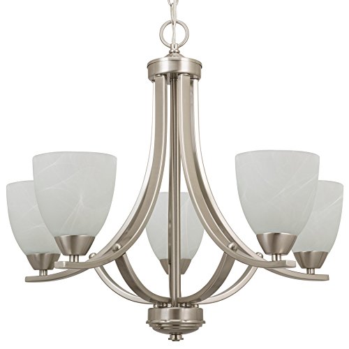 The Weston contemporary chandelier adds the perfect touch of elegance to your dining room or foyer. With it's sweeping arms and Alabaster glass shades, the Weston chandelier is an attention-grabber. Featuring (5) illuminating fixture arms, the Weston chandelier provides a fresh and contemporary look to any foyer or entryway. In addition, the chandelier is UL listed, so you can be sure you are not only getting a stylish fixture, but a safe one.