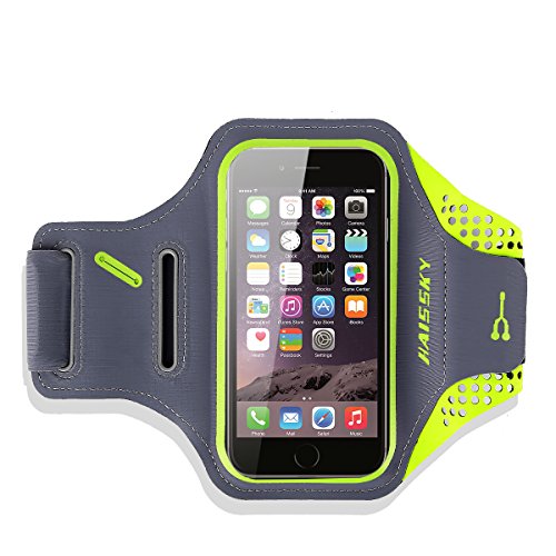 PojoTech Premium Water Resistant Sports Armband with Dual Arm-Size Slots,Key Holder,Multifunctional Pockets for iPhone 6/6s plus (4.7''-5.5'') Samsung S7 Edge ect Size up to 5.7'' Applicable (black)