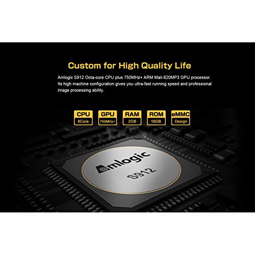 -. Feature : Advanced Amlogic S912 Octa Core cortex-A53 64bits,2GB+16GB,provides you with ultra-fast running speed and professional graphic processing ability, supports H265/VP9-10 decoding/4k Ultra HD/High-definition 1080P stream / KODI 16.1 pre-installed, It is a practical home streaming media player, you could enjoy thousands of movies from Netflix, Genesis, Navix, Phoenix. Also you could play massive android games in the large screen smoothly. / Perfect run android 6.0 operating system, you could install or uninstall application easily / DUAL-BAND Bluetooth & WIFI: Supports 2.4GHz + 5.0GHz Dual-Band Wi-Fi, Bluetooth 4.0,1000M LAN / Beautiful item and packaging, you could buy it for gift. 1 year free warranty, any question we will respond in 24 hours