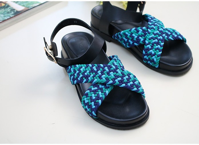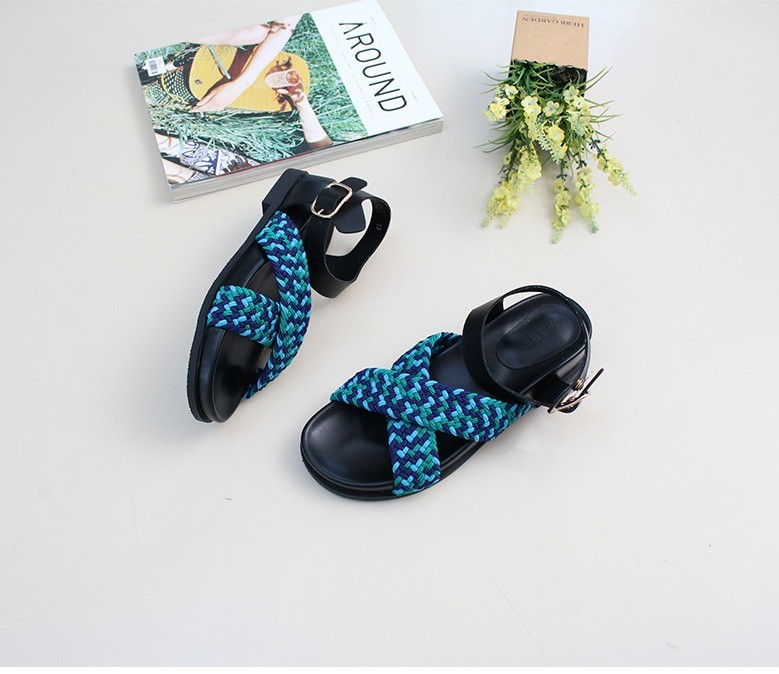 商品名:サンダル レディース フラットヒール ペタンコ クロスストラップ メッシュ 2018 夏 ファッション 靴 婦人靴