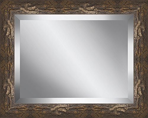 Ashton Art & Decor BPMF262-2024 Ashton Art & Decor Tree Bark Effect Framed Beveled Plate Glass Mirror, 26.5 by 30.5"