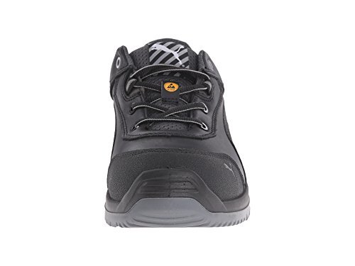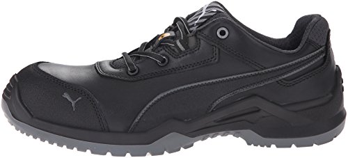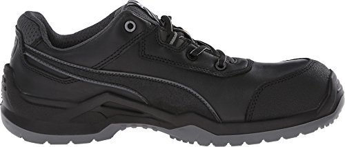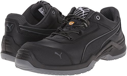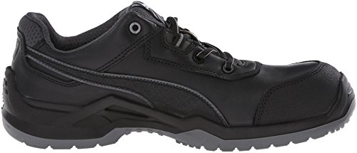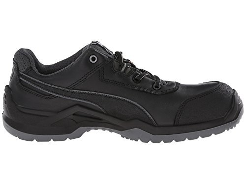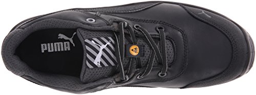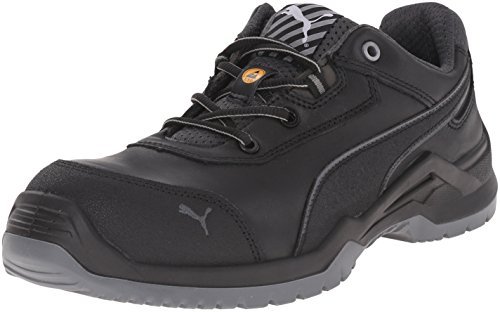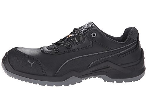 Studio : Puma Safety Publisher : Puma Safety Binding : Apparel Product Description Features a fiberglass reinforced composite toe cap with a spacious toe area for added comfort. Erogonomic last shape for a more modern design. Traditional lace-up system for a secure fit. BreathActive functional lining offers a breathable, more comfortable foot environment. Anatomically formed, removable evercusion® BA footbed provides excellent underfoot comfort and support. The iCell element in the heel area improves the cushioning and enhances the shoe's stability, guidance, and comfort. Additional injected scuff protection in the toe area. TPU heel protection. TECHNICS PU outsole with different profile elements which offers better ground contact and optimal mobility. Meets or exceeds the highest ASTM standards for toe impact I/75 and compression C/75 protection. SD tested below 35 m0hms and specially designed to be worn, if electrostatic charges need to be reduced by controlled dissipation of charge. Imported. 0
