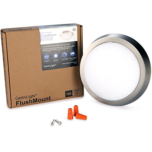 GetInLight 7 Inch Flush Mount LED Ceiling Light with ETL Listed, Bright White 4000K, Brushed Nickel Finish, IN-0302-2-SN-40
