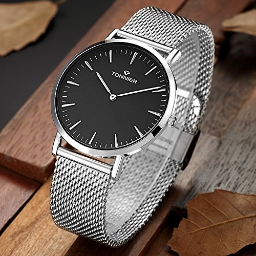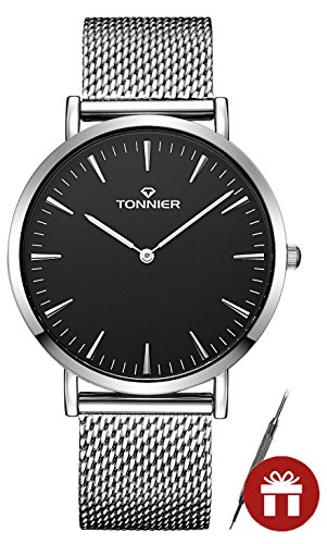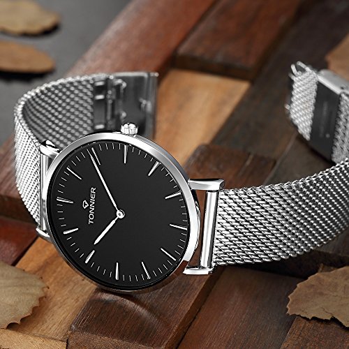 -. Feature : Tonnier W8479G ultrathin dial stainless steel strap quartz wrist watch for men. / Ultrathin round dial design,no second hand design, make the the watch unique. / High hardness glass mirror, scratch and wear resistant. / Stainless steel ultra-thin mesh belt with high-grade materials, it's comfortable to wear. / Imported Japan quartz movement, keep precise time.