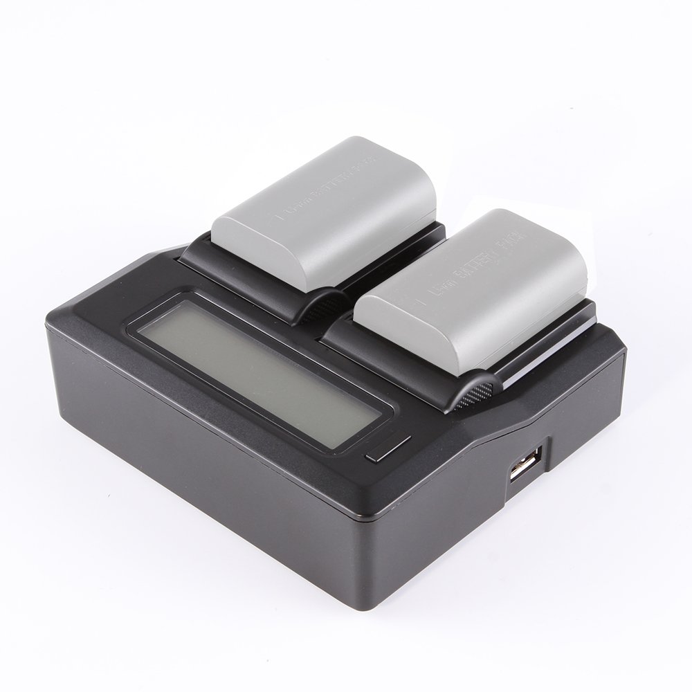 This new dual LCD charger for Canon LP-E6 is a modern dual battery charger with advanced features and LCD display.