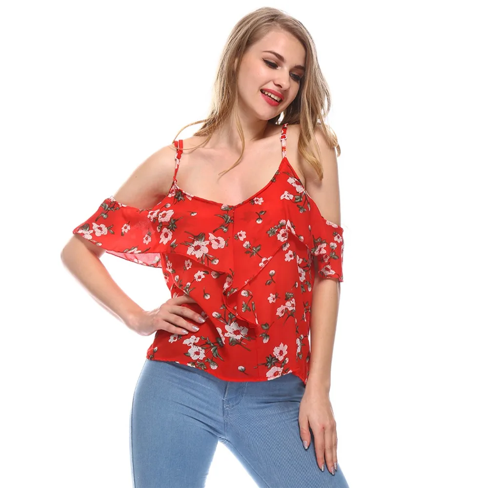 women Sleeveless Tops:Off Shoulder Ruffle Tops