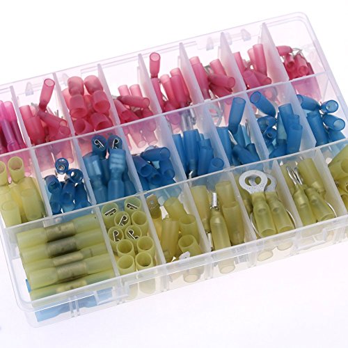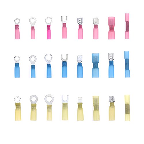 Glarks 240pcs 22-16 16-14 12-10 Gauge Nylon Heat Shrink Waterproof Electrical Insulated Quick Splice Crimp Terminals Connectors Mix Assortment Kit Include Ring Fork Spade Butt Terminals Connectors