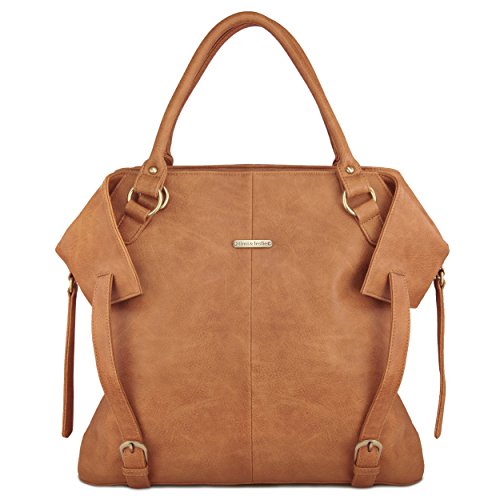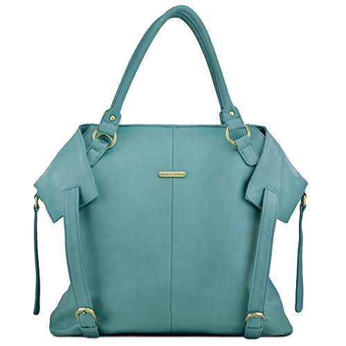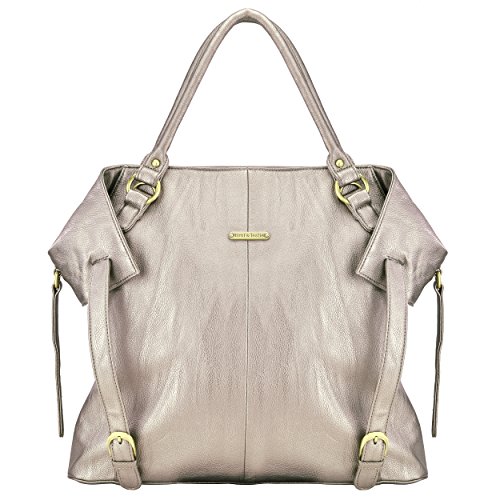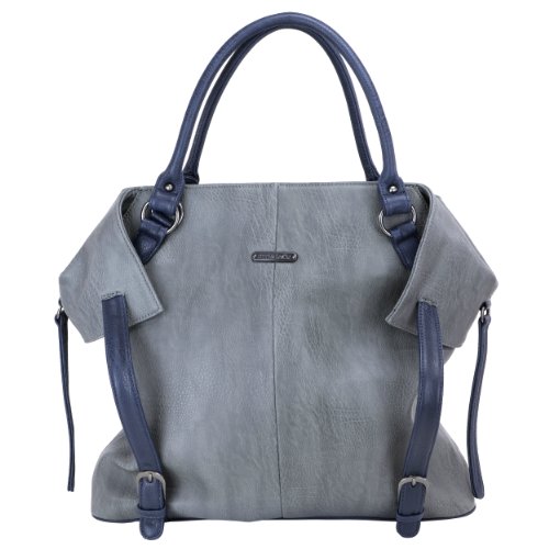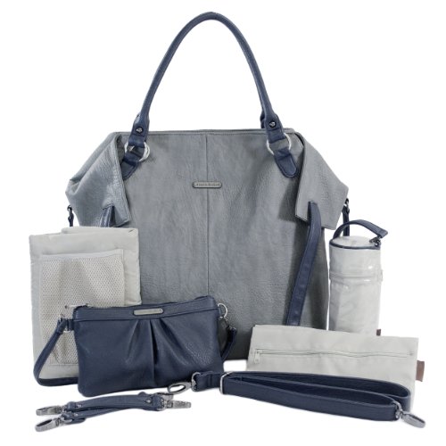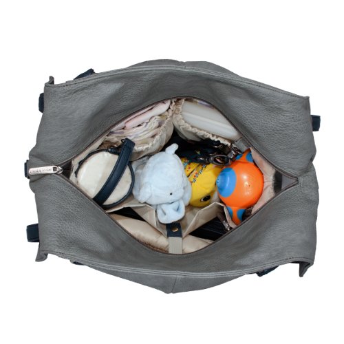 Designed for the woman in every mom, the Timi & Leslie Charlie Diaper Bag - Gray/Navy is a must-have. This diaper bag is made of vegan faux leather in gray with navy straps and custom hardware with a gunmetal finish. Interior and exterior pockets, a matching changing pad, and a zipper closure keep you organized. The stroller straps and cross-body, adjustable and detachable strap make this diaper bag versatile. The navy clutch goes anywhere! About Timi & LeslieTimi & Leslie was founded in 2000 by Leslie Newton. Leslie was performing with the Groundling’s Theater in Los Angeles and for fun she sewed bags out of vintage fabric she had collected. Leslie designed and crafted her first diaper bag as a baby shower gift for a friend. It was made of retro fabric she covered in vinyl, “... like my grandmother’s 1950’s vintage couch,” she says. Designed for the woman in every mom, Timi & Leslie bags pioneered the stylish-yet-functional diaper-bag movement. In 2005, Women’s Wear Daily ranked Timi & Leslie second among companies who have made a significant impact in the childrens market over the past 20 years. Celebrity fans include Angelina Jolie, Cindy Crawford, Courtney Cox, Nicole Kidman, Jessica Alba, and more. Dimensions: 17W x 4.75D x 15.5H in.. Made of PVC-free, vegan faux leather in gray and navy. Zipper closure; custom gunmetal gray hardware. 6 interior pockets, credit card slots, and key fob. 2 exterior pockets, detachable strap, clutch. Includes changing pad with mesh pocket.Feature