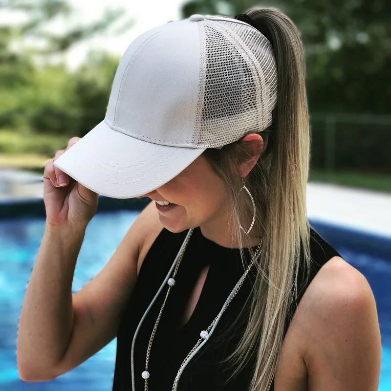 Women Messy Bun Baseball Cap: Summer Mesh Sports