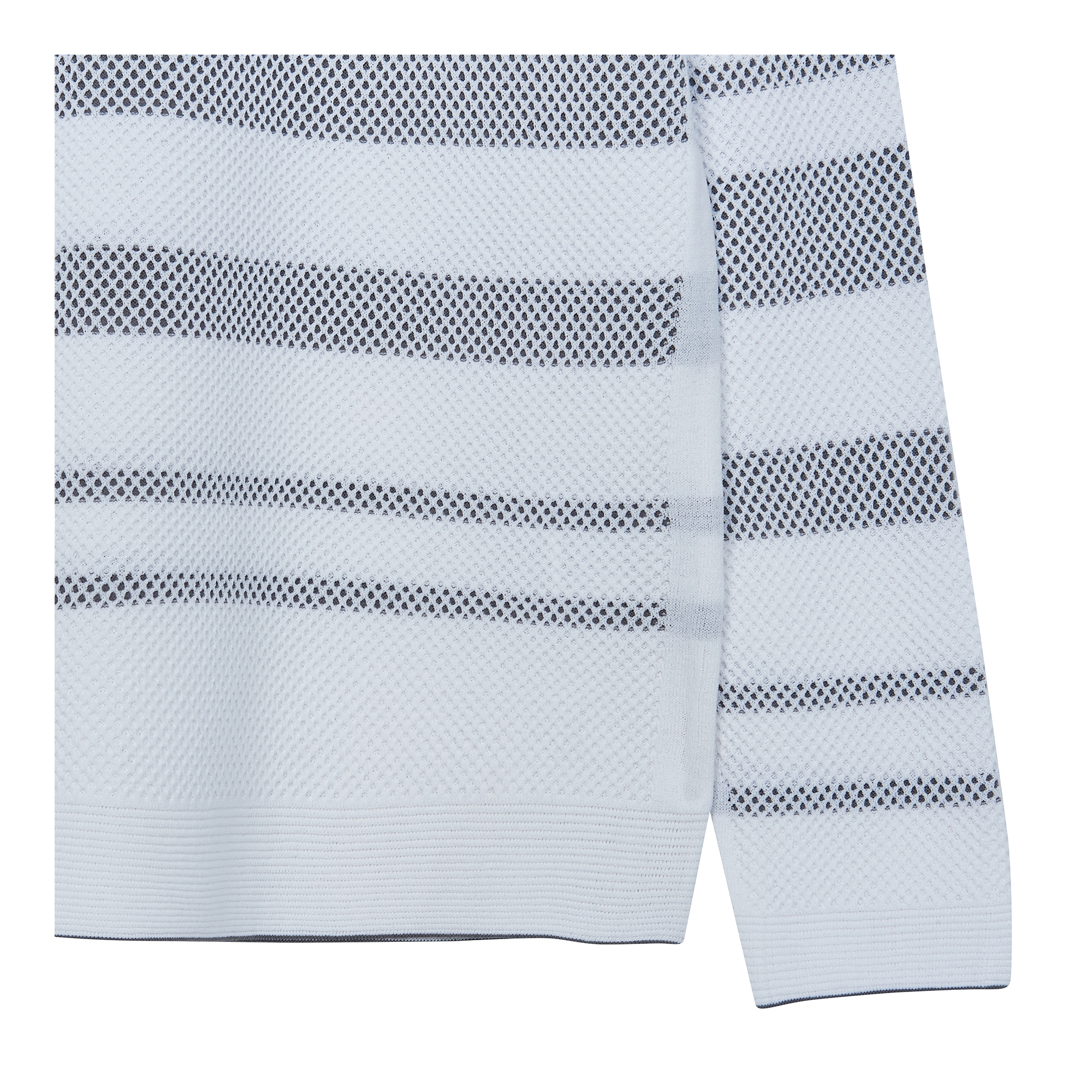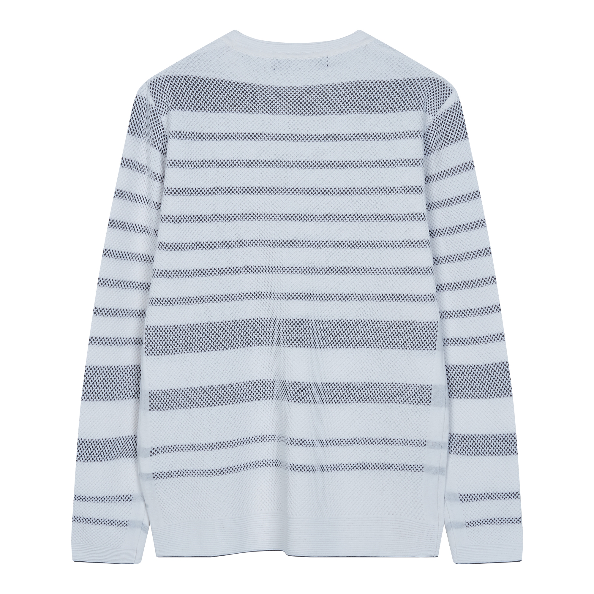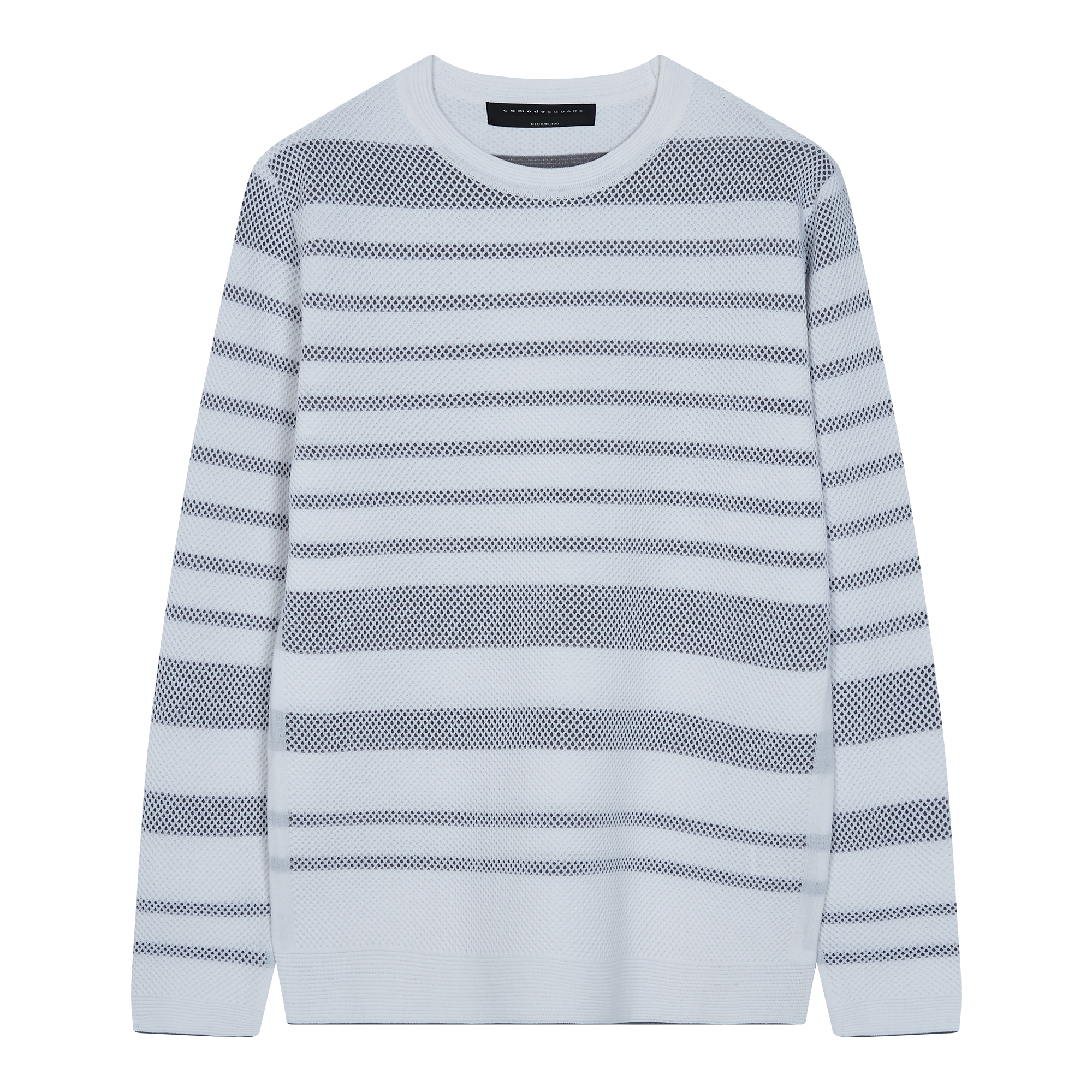 컬렉션 : 17S/S 디자인 포인트 : - 스트라이프 조직이 배색 효과를 주어 유니크한 느낌을 주는 니트- 배쉬소재 디테일의 쿠션 느낌의 캐주얼한 디자인 스타일링 추천 : 깔끔한 면팬츠나 슬랙스와 스타일링하여 니트로 포인트 활용 가능함