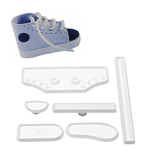 Ckeyin ® 6pcs Plastic Baby High Cut Sneaker Shoe Fondant Cake Mold Tools for DIY Birthday Cake Sugar Craft Decorating