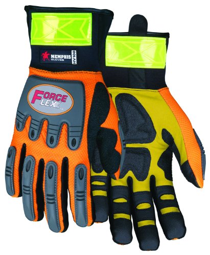 MCR Safety HV100XL ForceFlex High Visibility Clarino Synthetic Leather Gloves with Reflective Material Cuff, Orange/Black, X-Large, 1-Pair
