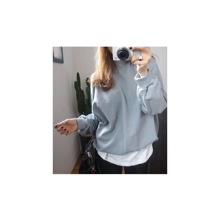 【2T】톱스 레이디스 트레이너 그레이 추동 심플 스웨트 sweat 캐주얼 로고 오피스 큐트 한국 《오루》상 스타일 댄스