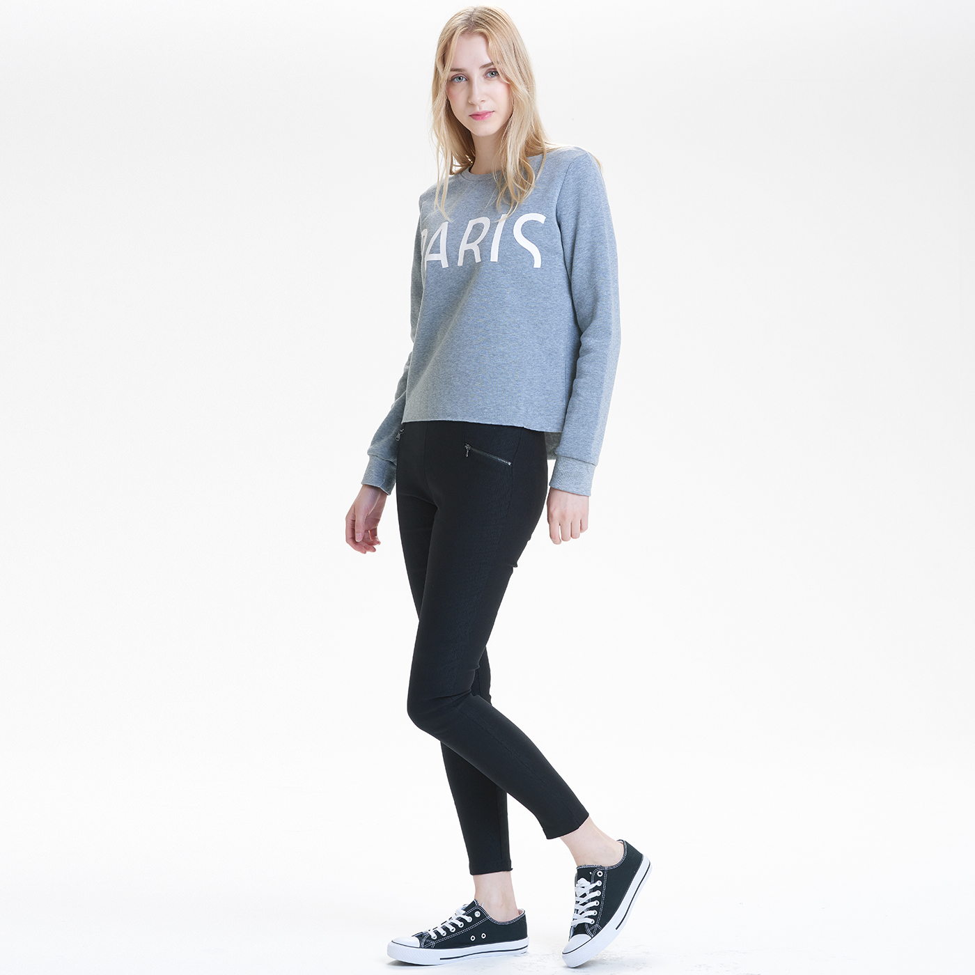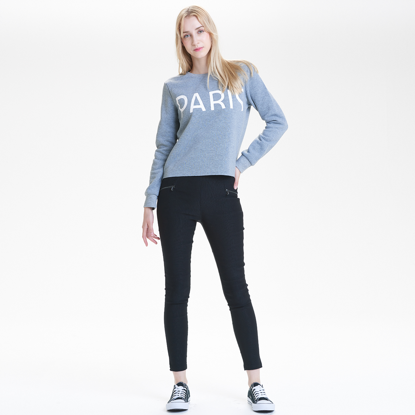 하이웨이스트 지퍼 디테일 레깅스로 신축성과  허리밴드가 편안한 스타일입니다.