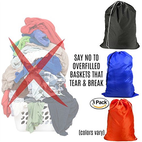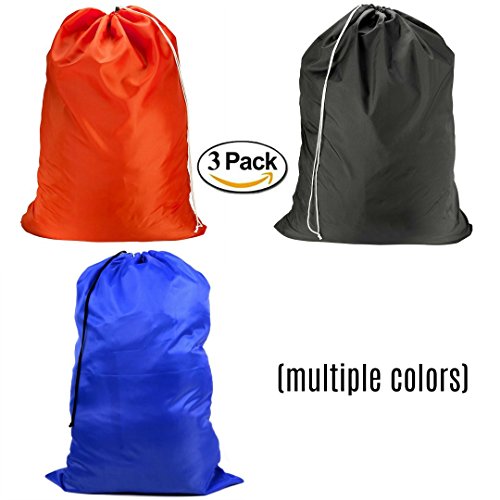 Laundry Gear Bags Set of 3 for Clothes, Sports Gear, & Protecting items. Lightweight, nylon, extra large size easy for kids to drag downstairs and up again with clean clothes. 3 different colors. (3)