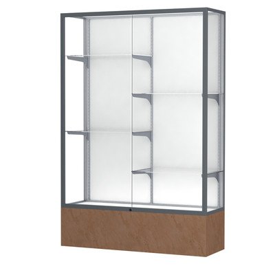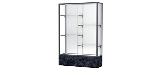 Studio : Waddell Publisher : Waddell Product Description 572WB-SN-SS Base Color: Silver Swirl, Frame Color: Satin, Case Backing: White Laminate Features: -Monarch Series collection. -Cases have an uncommon look for a great way to house your extraordinary accomplishments. -Anodized aluminum framing secures the sliding tempered glass doors and built-in locks. -Comes with interior lighting for added emphasis. -Made in the USA. Product Type: -Trophy display case. Lighting Available: -Yes. Design: -Floor standing. Display Material: -Glass. Country of Manufacture: -United States. Frame Material: -Metal. Adjustable Shelves: -Yes. -Lights not included. Dimensions: Overall Height - Top to Bottom: -72". Overall Width - Side to Side: -48". Overall Depth - Front to Back: -16". Overall Product Weight: -240 lbs. Base/Stand Height - Top to Bottom: -12". 0