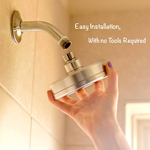 FILTER YOUR WATER: The Reign Shower Head has a dechlorinating shower filter that will also reduce dissolved solids; You won't have to sacrifice water pressure due to our micro hole technology; The shower filter is composed of a filter sponge and a cartridge of calcium sulfite stones; Its premium metal frame and over-sized 4.5" face will enhance your shower by giving you full body coverage; The metal ball joint allows you to swivel the shower head so you may adjust the direction of water flow