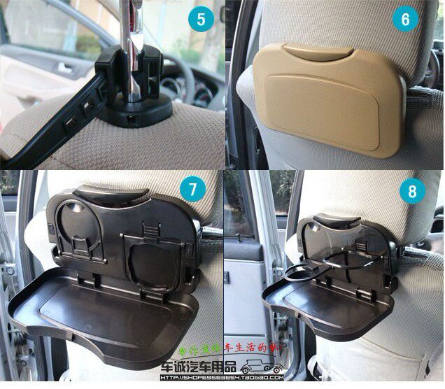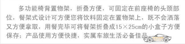 Multifunction back racks, folding convenient, fixed to the front seat of the head and neck area, dining rack design can be easily mounted on your beverage racks, neither crisp and easy to pick up, finished eating meals can be rack 15 × 25cm folded into a small box easy to save; convenient product to use, it is necessary to share car journey of life.