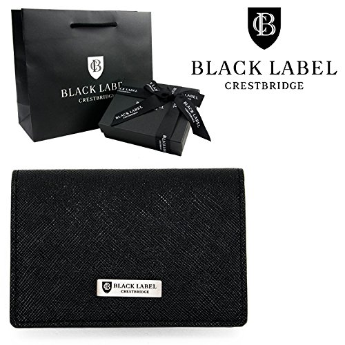 BLACK LABEL CRESTBRIDGE [세트품] 기프트 랩핑제 블랙 라벨 크레스트 bridge 정규품 프리즘 레더 카드 케이스 블랙 엠보스 패턴 가죽 일본제 맨즈 카드 지갑