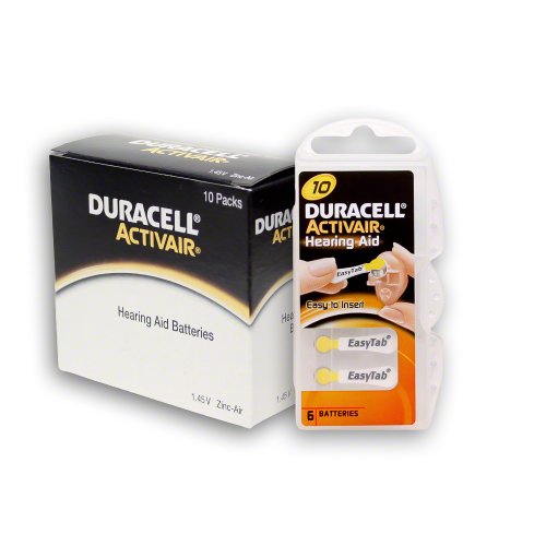 - Pack of 6 of size 10 1.45-Volt zinc air hearing aid batteries (60 total batteries)