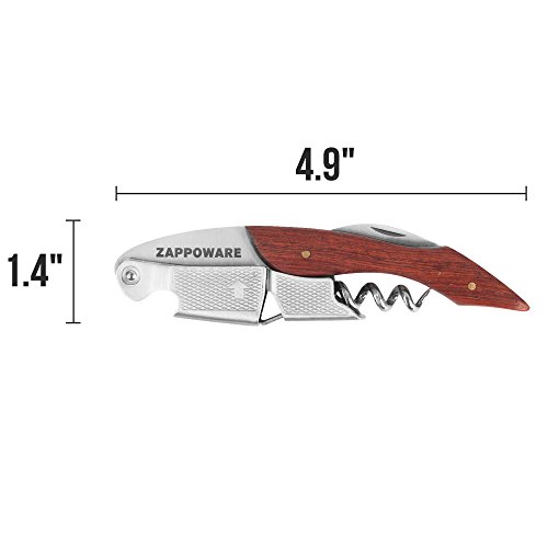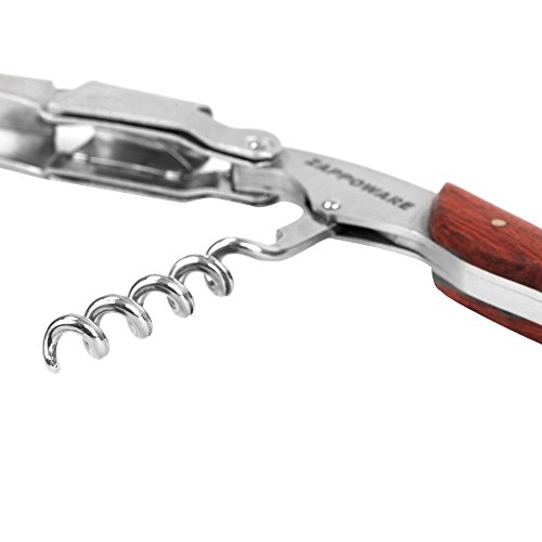 -. Feature : HIGH QUALITY, COMPACT SIZE FOR THE BEST PRICE. The ZAPPOWARE bottle opener and the corkscrew is made of indestructible 420 stainless steel to open countless beer bottles and wine corks without getting the dull or losing shape. The handle is made of natural rosewood. The accessory is lightweight: 4 ounces and compact: 4.9 x 1.4 x 0.8 inches. / EXTRA LEVERAGE WITH DOUBLE-HINGE. Two-level lever, which is used in the construction, eases the cork extraction process. Both hinges are on the same level with the cork when opening the bottle. Corkscrew double - it's comfortable, no effort, no cork crumbs or damage. / EASILY OPEN ANY BOTTLES USING 3-IN-1 BAR ACCESSORY. The ZAPPOWARE best bottle opener has an easy 5 rotation worm that cleanly removes corkscrews with minimal effort. With the corkscrew kit, you can also open any beer or soda bottles. Also, there's a foil cutter. / BEST GIFT IDEAS. This is a great gift for the beginning bartenders, sommeliers, and wine lovers. Stylish design and high-quality natural materials are used - the bottle opener looks just great. / LIFETIME GUARANTEE + FREE EBOOK. Our product's high quality lets us be absolutely sure of it, that's why we offer our customers a lifetime guarantee. The eBook is given to anyone who buys a corkscrew set. We are sure that you'll be 100% pleased with the ZAPPOWARE corkscrew multi tool.