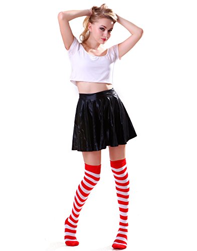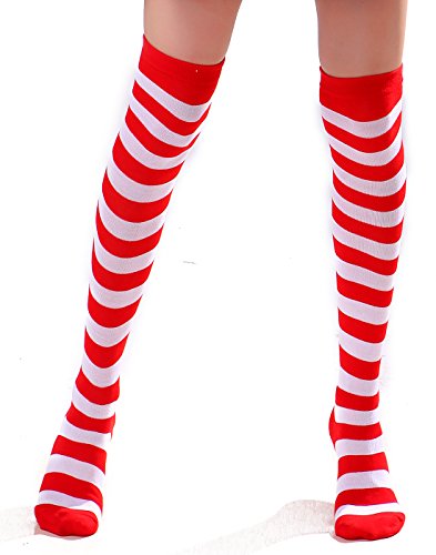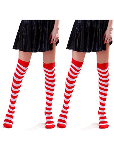 Title : HDE Women's 2 Pack Opaque Two Tone Horizontal Striped Thigh High Stocking Socks (Red with White)