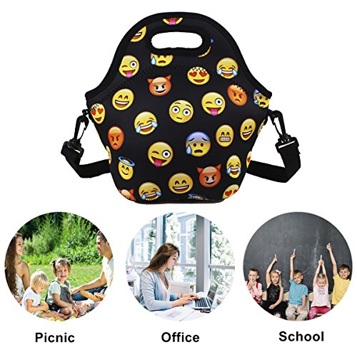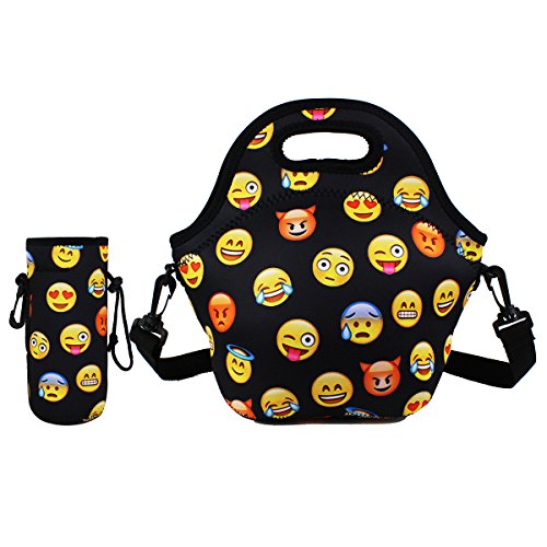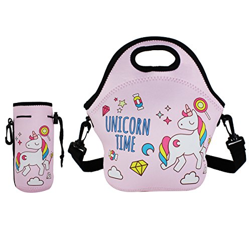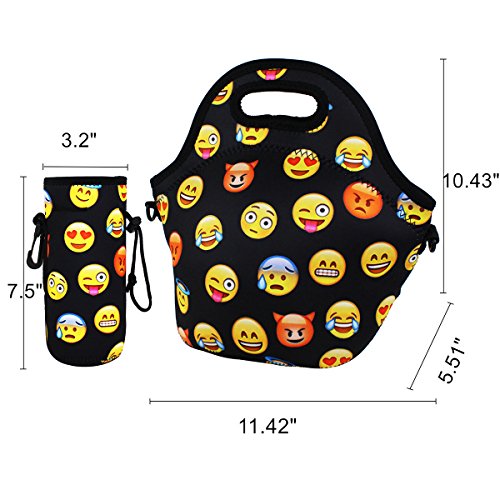 -. Feature : DIMENSIONS: Lunch Bag-11.42"L x 10.43"H x 5.51"W, 8.7 inches Deep, fits containers up to 7"L x 6"W. Bottle Holder-7.5"L x 3.2"H x 3.2"W, one size fits most bottle. / GOOD INSULATION: Neoprene is a kind of material which can also make wetsuit,if it can keep a surfer's body temperature stable, just think our lunch bag will insulate your lunch. With high quality neoprene, our Violet Mist lunch bag keeps your food nicely warm or chilled for 2 to 4 hours. / HEAVY-DUTY ZIPPER & SHOULDER STRAP: We use smooth zipper and comfort-grip rubber tab, makes our bags super easy to zip/unzip. The bottle holder made with same material,too. Keeps your drink chilled for hours. Includes a hook makes you hang your bottle to many places conveniently. Also came with a adjustable shoulder strap so you can free your hands. / STYLISH AND CUTE DESIGN: We provide various kinds of cute and fashionable design to make sure that everyone can find his/hers favourite bags. Great idea for gift giving, birthday, Christmas and Thanksgiving, etc. / NON-TOXIC, PVC-Free, REUSABLE and ECO-FRIENDLY: Please do not worry about the no poisonous smell of the bag when you receive it, the smell will disappear after a wash or place it in a airy place for a while.