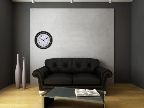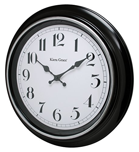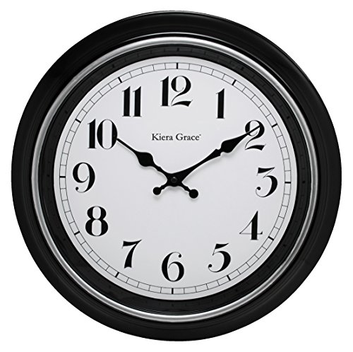 Kiera Grace Degraw Round Wall Clock, 16-Inch, 2-inch Deep, Black with Brushed Silver Bezel