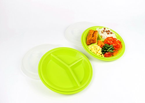Trend Friends Healthy Portion Control Plates, On The Go, Pack of 2, BPA-Free, 3-Section Diet Plates with Vented Lids, Freezer Dishwasher & Microwave Safe, Helps Lose Weight, Manage Blood Sugar,
