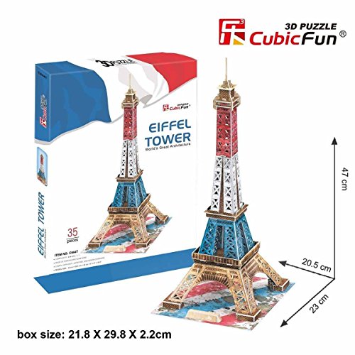 -. Binding : Toy -. Brand : CubicFun -. EAN : 6944588201968 -. Feature : Finished Size: Approx. 20.5*23*47 cm / Material: Imported paper and EPS / Certificates: Europe EN71,US ASTM F963 and IS08124 standards / Puzzle quantities: 35 pieces / Difficulty:★★★★ -. Label : Cubic Fun -. Manufacturer : Cubic Fun -. MPN : C044T -. PackageQuantity : 4 -. PartNumber : C044T -. ProductGroup : Toy -. ProductTypeName : TOYS_AND_GAMES -. Publisher : Cubic Fun -. Studio : Cubic Fun -. Title : Eiffel Tower in Paris 3D Puzzle France French Color