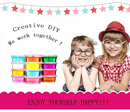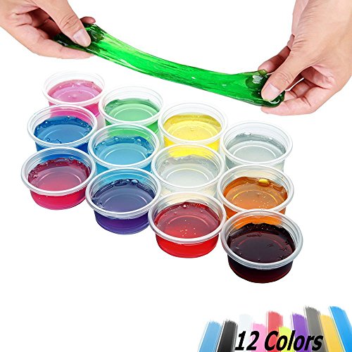 Aitsite 12 Packs 12 Colours Crystal slime set is the most popular anti-stress toys in 2017! WOW 12 Colours!!Really stretchy and fun to poke! New scent added! Great for kids and fun for desk toys, gifts. Helps with Anxiety, Stress.