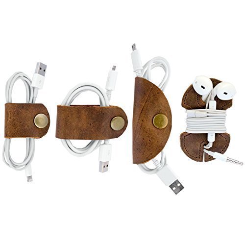VINTAGE-STYLE CORD MANAGEMENT: Add a touch of class to your messy cables with these easy to use Cord Clams and Headphone Wraps. Perfect for travel, reducing desk clutter at work, storage in your car or at home. Made with Full Grain Leather and heavy duty brass metal, these are elegant and stylish ways to keep your cables neat and tidy. Perfect for phone chargers, headphones, your everyday cables.