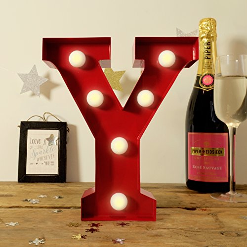 -. Binding : Misc. -. Brand : Giggle Beaver -. EAN : 5055822208252 -. Feature : Letter Y shaped decorative light / Metal letter contains LED bulbs (which each have a plastic casing) / Battery operated (requires 2 x AA batteries) / Measures approximately 22 cm x 5 cm x 20 cm -. Label : Giggle Beaver -. Manufacturer : Giggle Beaver -. ProductGroup : Home -. ProductTypeName : HOME -. Publisher : Giggle Beaver -. Studio : Giggle Beaver -. Title : Metal Letter Lights - Red (Letter Y)