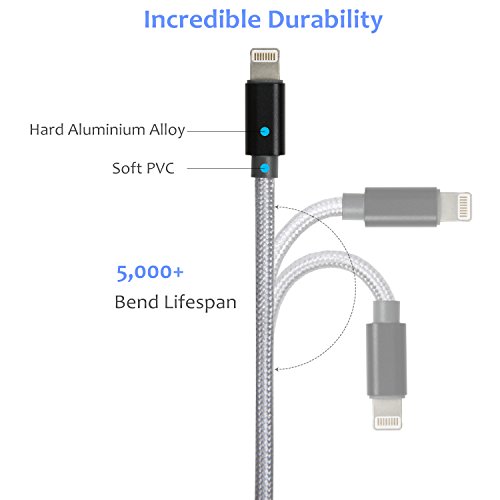 - DURABLE and FASTER CHARGING –Aluminum alloy shell used, 5000+ bend lifespan to confirm the cable durable enough. 8 Pin tinned copper wire used, so that this item will be more conductive and current attenuation smaller than traditional copper wire.