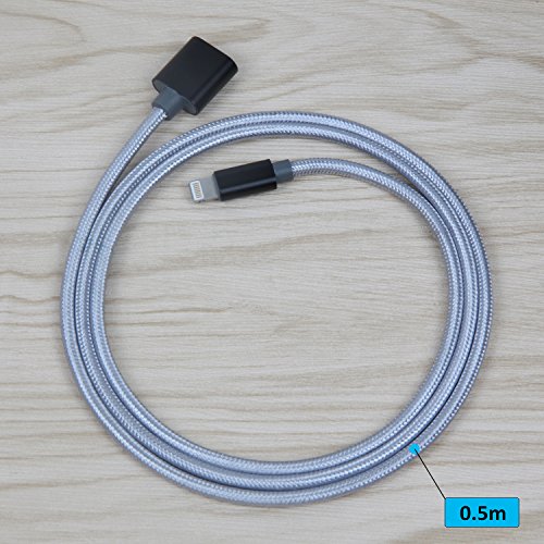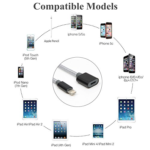 Lightning Extension Cord Cable Charging Sync Vedio & Audio for iPhone 5/5C/5S/SE/6/6S/7 Plus/ iPad/iHome, Male to Female Lightning Dock Extender Connector Case Adapterr-Braid(0.5m Black)