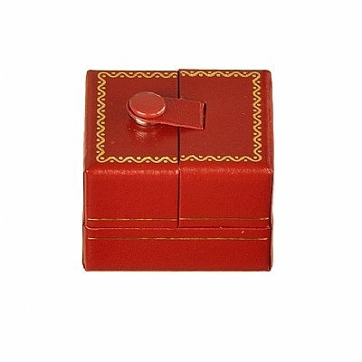 RED FINGER RING BOX DELUX LEATHERETTE WITH GOLD ACCENT AND SNAP DOOR CLOSURE