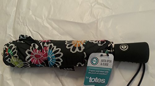 Product Description Stay dry with the Totes Signature Auto Open Auto Close Compact 44" Umbrella. Designed with a simple auto open/close you'll be able to quickly pop open your umbrella the next time it starts raining. A convenient carrying strap lets you easily bring your umbrella with you. The wide 44" canopy folds down to a compact 11" size when needed. Measures 11" x 2" when folded. 0