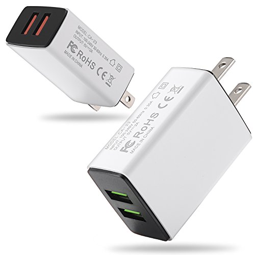 -. Feature : ✔ Security charge: V-0 grade PC fireproof material, ★★ Powerful protection: output short circuit, built in over-current, over-voltage, over-heat★★. The USB Wall Charger is subjected to rigorous internal testing and multiple safety monitoring. When the battery is full, it automatically stops charging. Bring you safer living space without worrying that it will burn out. / ✔ Performance Parameter: Input: AC100-240V, Output: DC 5V/2A (10W), U.S.& World Standard. Wide voltage range matches different safe voltage standards. Dual usb port is convenient for you to use two devices to charge, to relieve your nervous life. / ✔ Humanized intelligent design: Light and easy to carry, It is very suitable for use in travel, home, office, training hall, hotel, etc. Smart dual port IC automatically recognizes and assigns the most effective current to your cell phone and tablets, with current and anti-shock protection. / ✔ Partial list of applicable: perfect fit for most Mobile Phone, Tablets, Game Devices, GPS Devices, Digital cameras, and other USB supported devices, Such as iPhone 7 Plus 6 Plus 6S, 6, SE, 5S, 5, 4S. 4; iPad Pro Air 2 Mini 2 3 4 5; iPod touch; Samsung Galaxy S8 S7 Edge S6 Edge S5 S4 S3, Note5/4/3, Galaxy Tab, Google, Nexus, HTC, LG, BLU, Nokia, Sony, Blackberry, Motorola, Microsoft, ZTE, OnePlus, Huawei, PSP, Xbox, E-book Readers, Bluetooth speaker, GoPro, MP3/MP4 Players, and More. / ✔ What you get: 2 Pcs USB Wall Charger, Within 30 days money back, 12 months warranty and friendly customer service.
