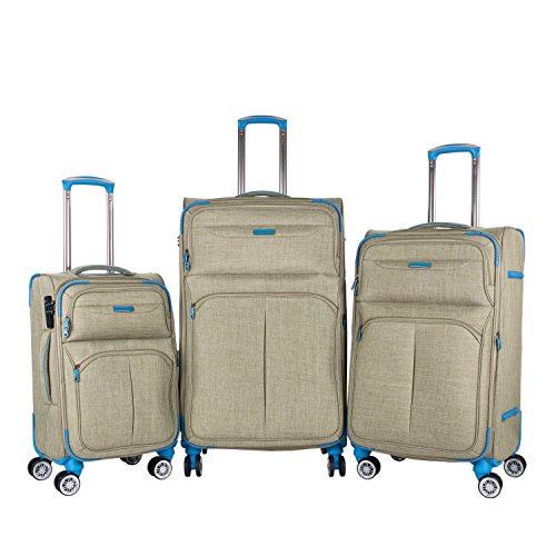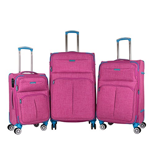 Studio : American Green Travel Publisher : American Green Travel Product Description Pack more into the extremely lightweight Heather luggage set! TSA locks keep your belongings safe while double spinner wheels ensure you get to your destination as smoothly as possible. Durable construction and expandble zippers make the Heather a must-have.Dimensions29 inch: 29 x 19.3 x 9.8 - 9.3 lb25 inch: 25 x 17.3 x 8.7 - 8.1 lb20 inch: 20 x 14 x 7.5 - 5.6 lbFeaturesExtremely lightweightHeathered designTSA combination lock360° eight-wheel spinnersExpandable zipper Type: Lightweight, Softsided, FashionMaterial: PolyesterPattern: SolidFeature: Expandable, Spinner, LockingColor: Black, Pink, Beige 0