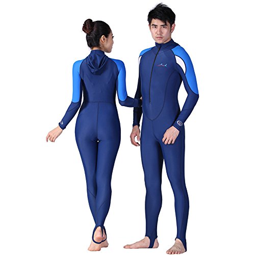 A Point Snorkeling Swimming Full Suit Bodysuit Wetsuit With Hood For Men/Women (men's white, M(163-169cm))