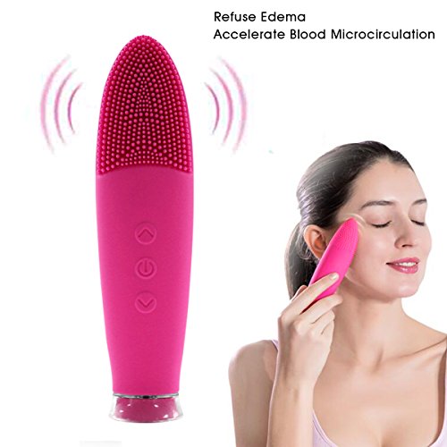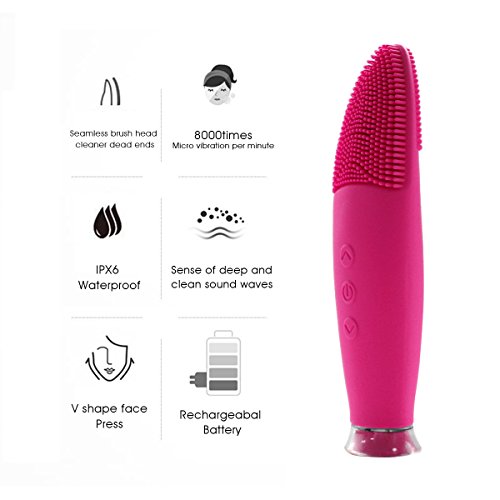 Sonic Face Brush, Waterproof Facial Cleansing Brush for Exfoliating Removing Blackhead and Massager Brush - Red