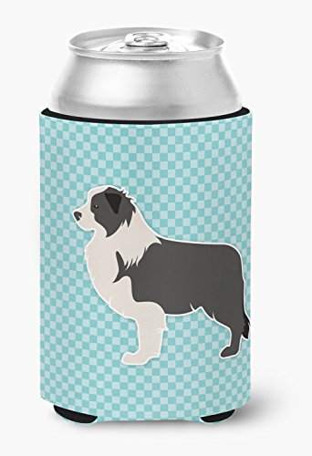 Caroline's Treasures black Border Collie Checkerboard Blue Can or Bottle Hugger BB3723CC, Can Hugger, Multicolor