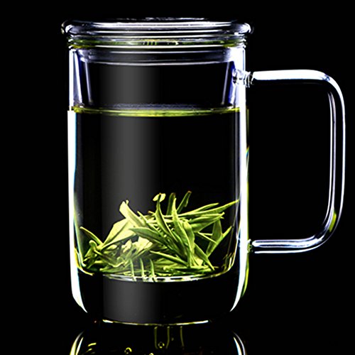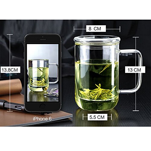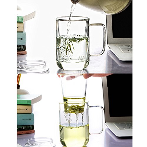 -. Feature : It quality of the clear glass good borosilicate, the glass handle do not get hot when use;suitable for gas stove,alcohol furnace and teapot warmer hob types / Diameter: 3.2inches, Height: 5.1 inches. Capacity: 400ml, Withstand temperature -30℃~150℃ rapid difference temperature / Men's modern glass tea set/tea mug/cup.It's a simple way to brew loose leaf tea and includes an infuser and lid / A great tea cup for loose tea lover,perfect for all kinds of infusions (camomile, leaf tea, mint tea, herbal teas, flower tea...),enjoy it alone or with your friend,like going out for afternoon tea! / You will get: A glass tea cup, glass tall tea Infuser, glass lid, our 18-month worry free and friendly service