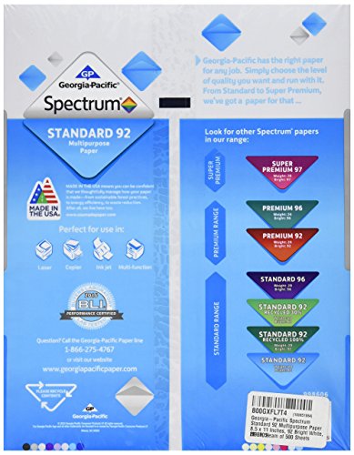 Georgia-Pacific Spectrum Standard 92 Multipurpose Paper, 8.5 x 11, 20 lb., 92 Brightness, 10 Ream Case, 5000 Sheets